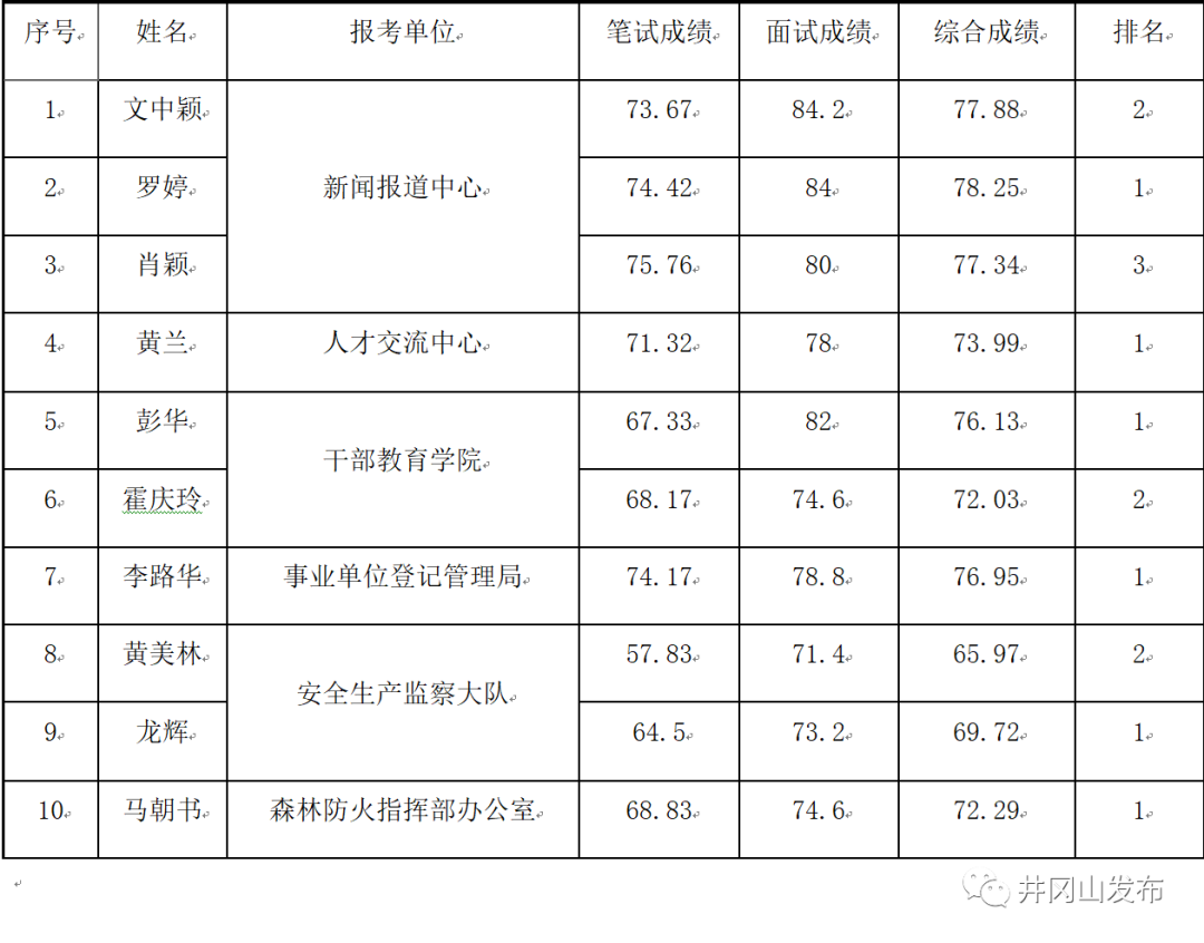 2020年井冈山市新闻报道中心等事业单位公开选调工作人员笔试面试工作已经完成,现将入闱体检人员名单及体检的有关事项公告如下: