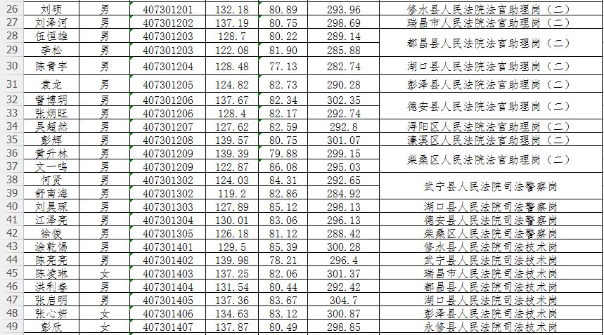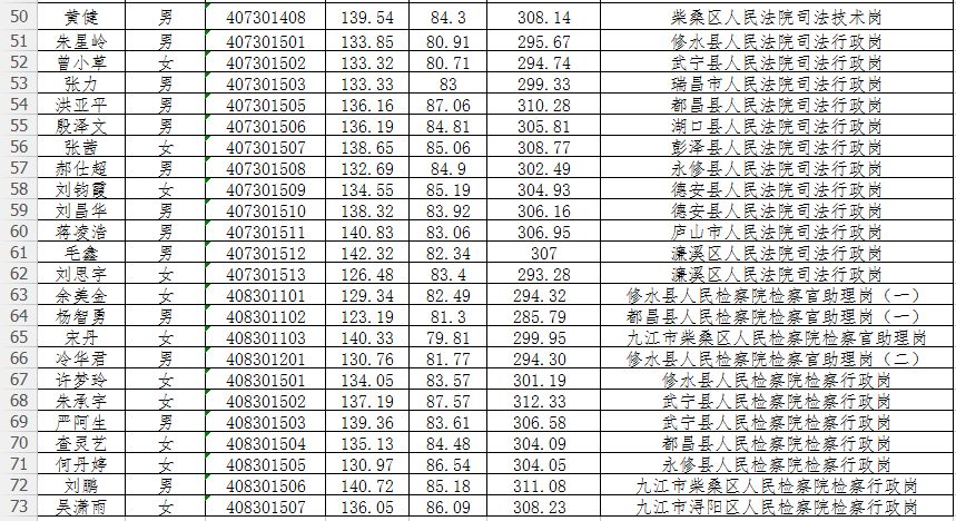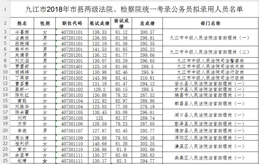 附件:九江市2018年市县两级法院、检察院统一考录公务员拟录用人员名单