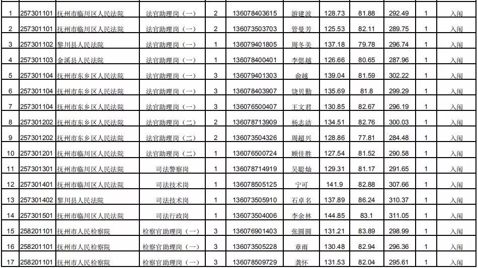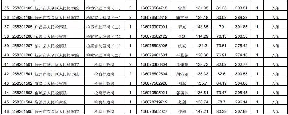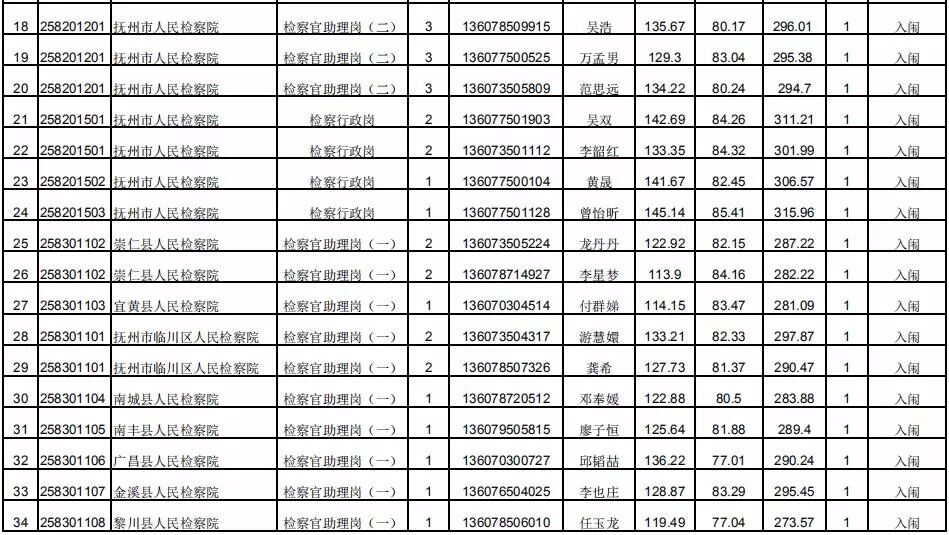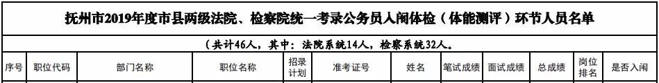抚州法检考录公务员入闱体检(体测)名单