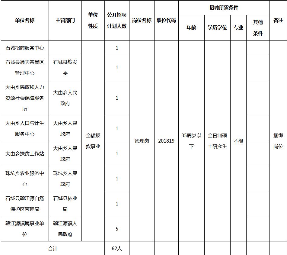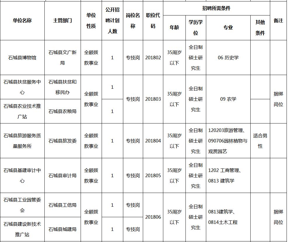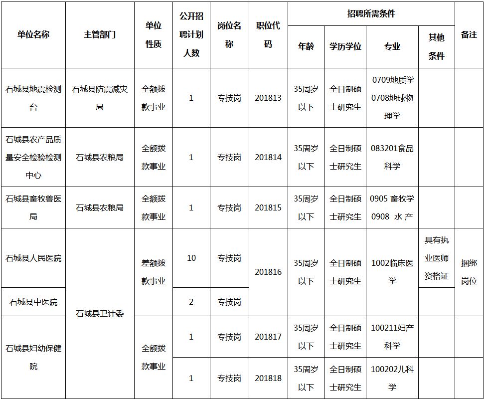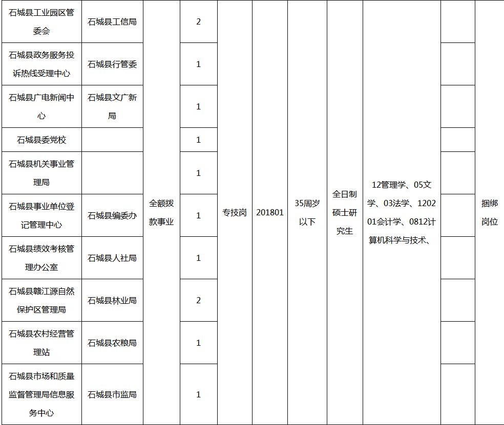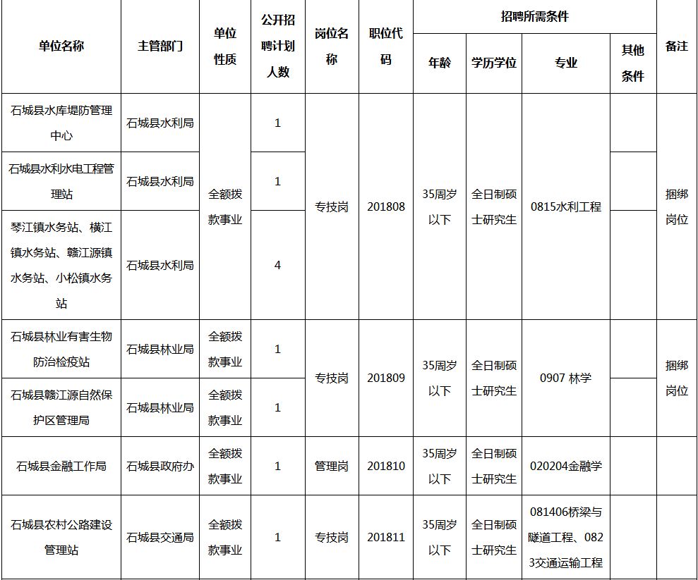 附件:1.石城县2018年事业单位公开招聘全日制硕士研究生职位信息表